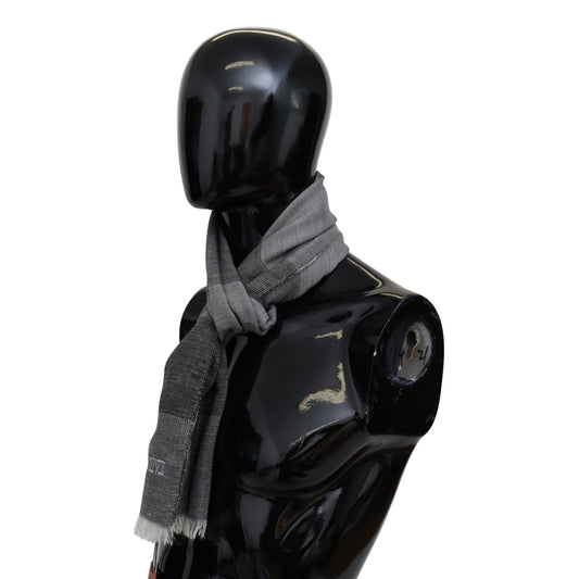 GF Ferre Dark Gray Wool Viscose Foulard Patterned Scarf