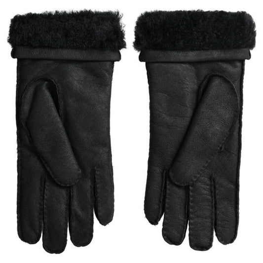 Dolce & Gabbana Black Leather Fur Short Hands Mitten Men Gloves