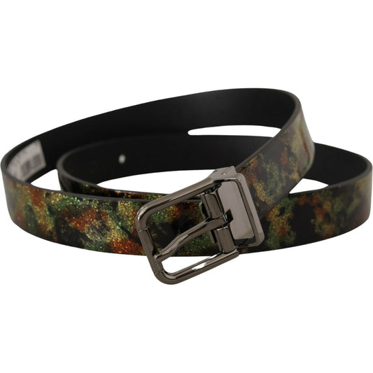 Dolce & Gabbana Black Green Leather Bronze Metal Buckle Belt