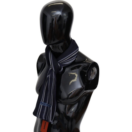 Missoni Green Striped Wool Unisex Neck Wrap Shawl Blue