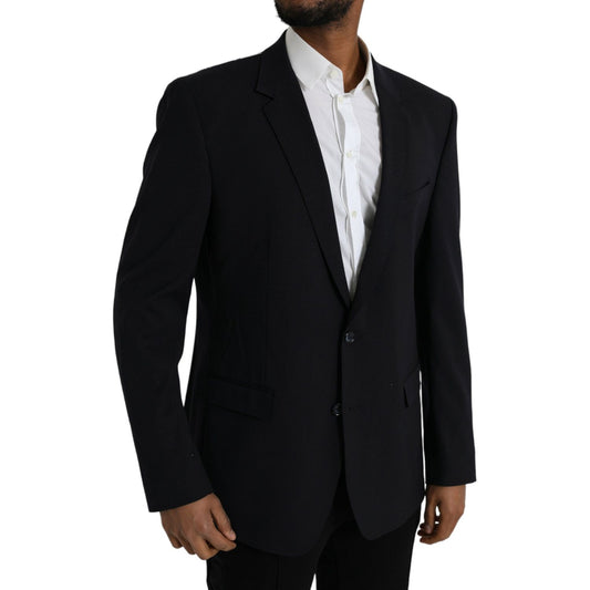Dolce & Gabbana Dark Blue Wool Single Breasted Coat Blazer